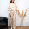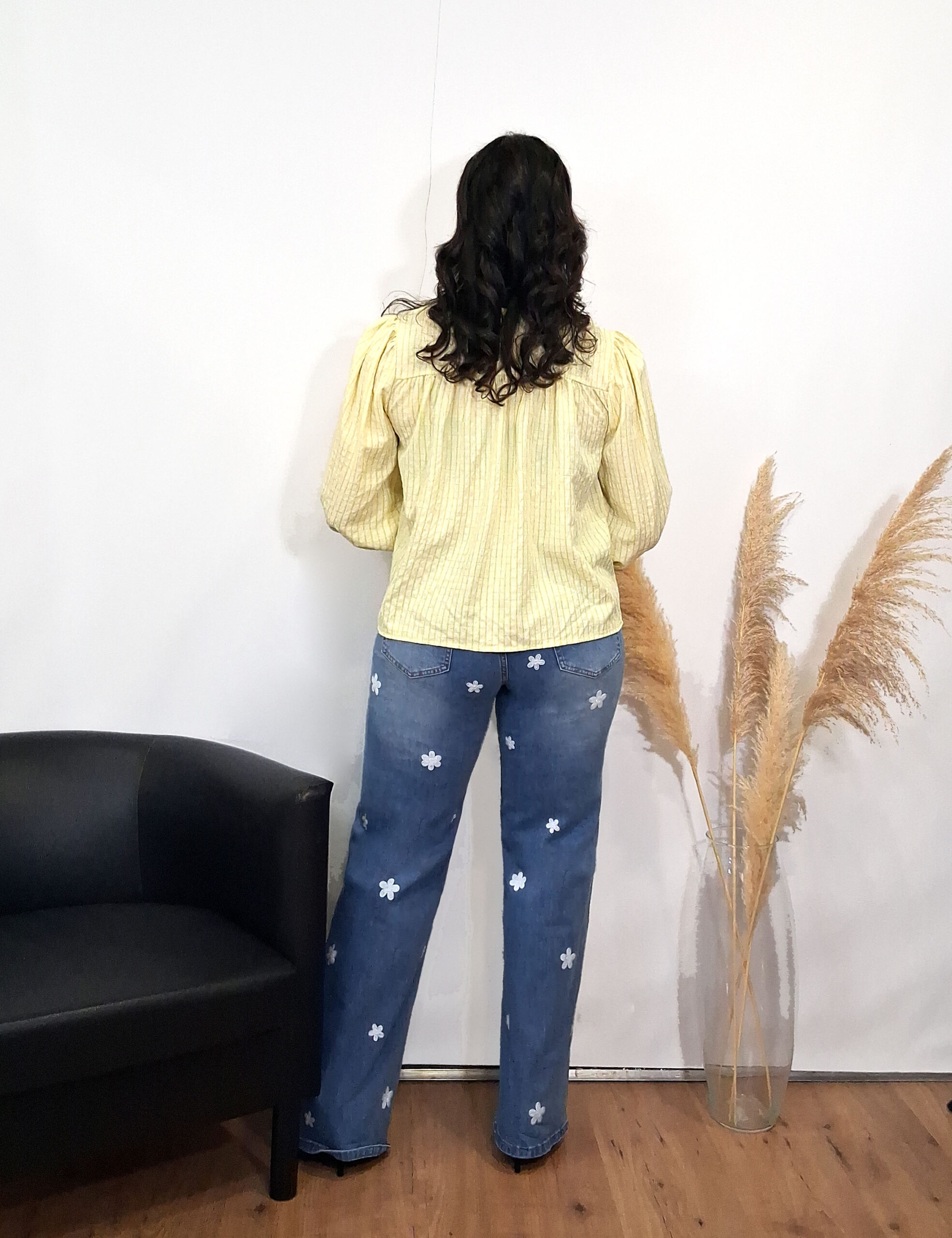 Blusa estilo oversize con estampado de cuadros en color amarillo pastel.
