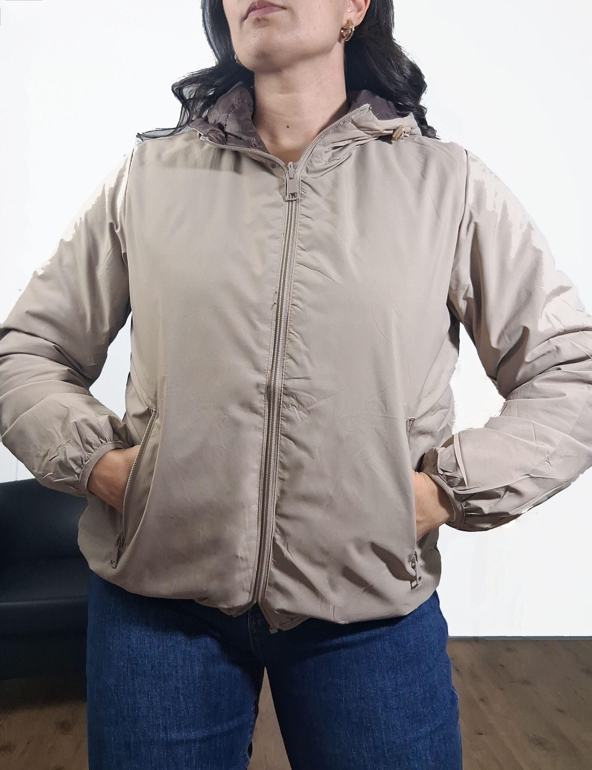 Chaqueta estilo bomber acolchada y reversible color beige/marrón chocolate. Dos chaquetas en una, ideal para combinar tus looks.