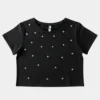Camiseta de niña cropped blanca con letras strass GIRLBOSS. Losan.