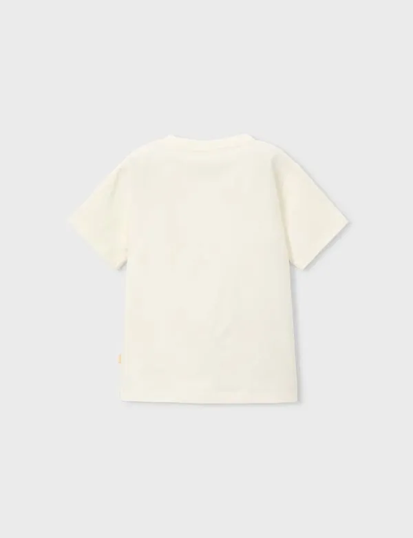 Camiseta de manga corta de la marca Mayoral, en color nata con dibujo de moto bordada en la parte delantera.