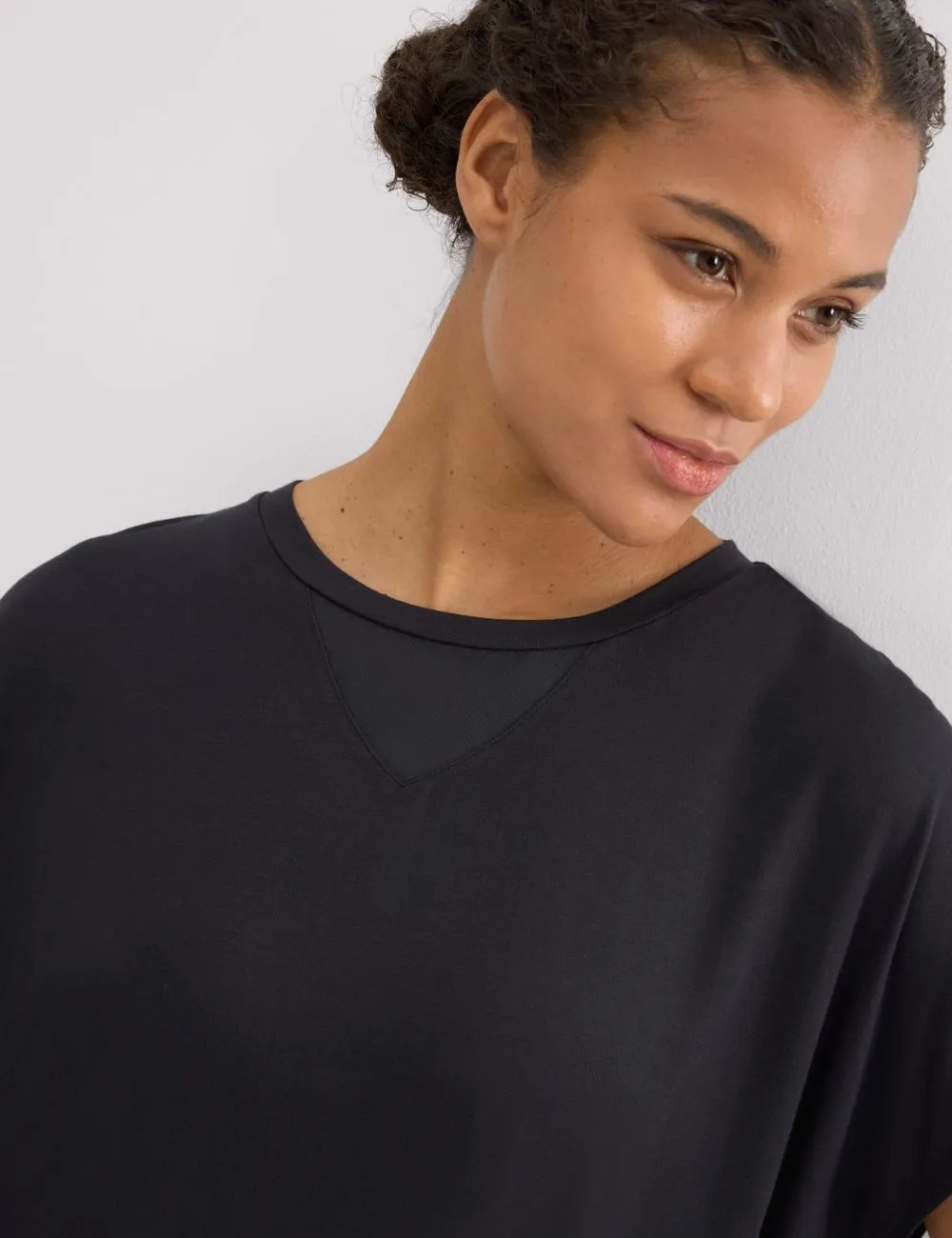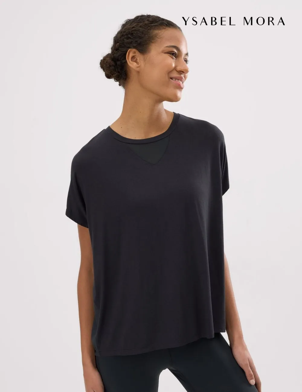 Camiseta deportiva Ysabel Mora, de manga corta confeccionada en una mezcla de viscosa y elastano de tacto ultra suave. Color negro.