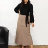 Camiseta de manga larga con goma y cuello redondo, con lazada en lateral. Color burdeos.