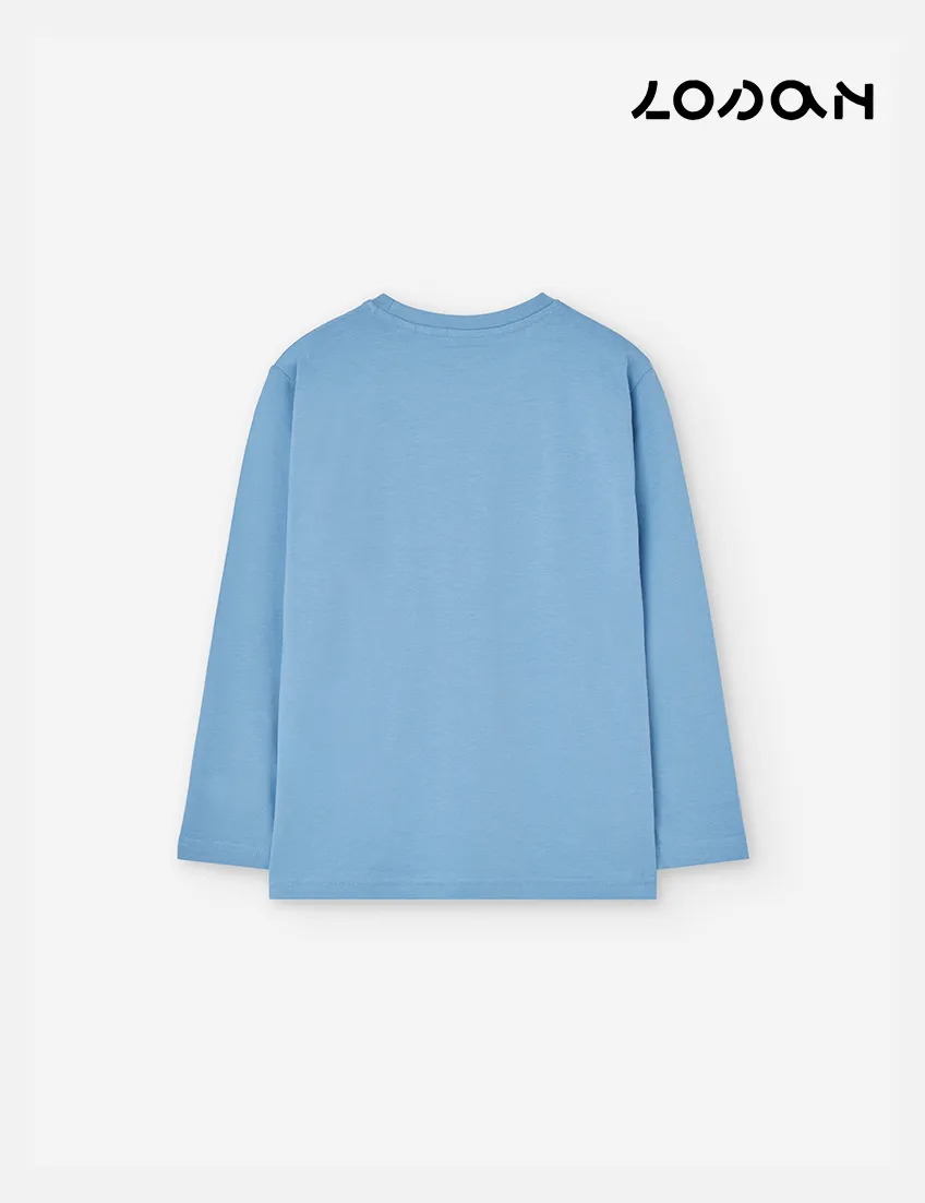 Camiseta azul de niño con manga larga. Estampado de skate. Losan.