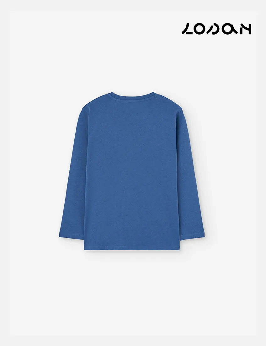 Camiseta azul de niño con manga larga. Estampado skaters. Losan.