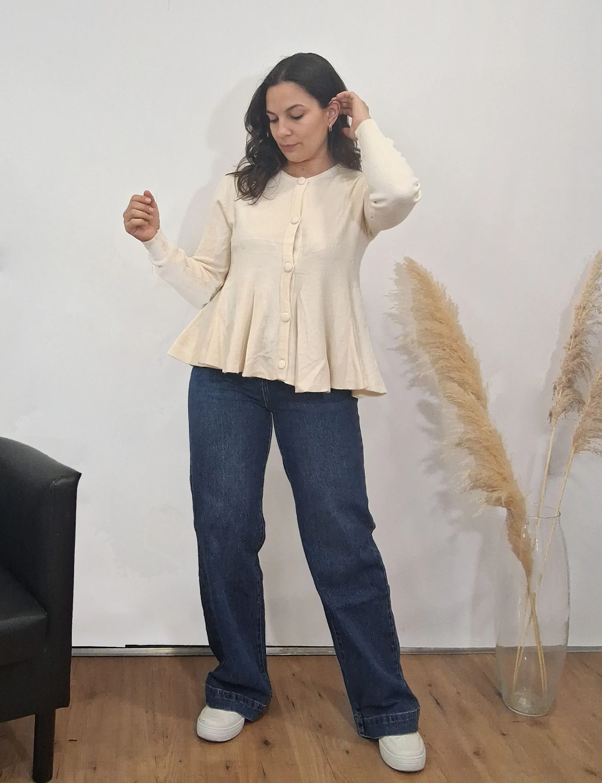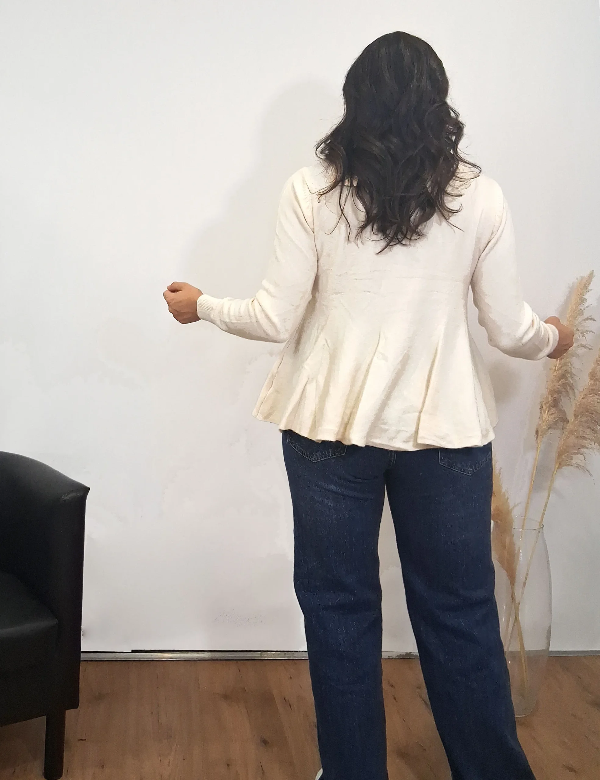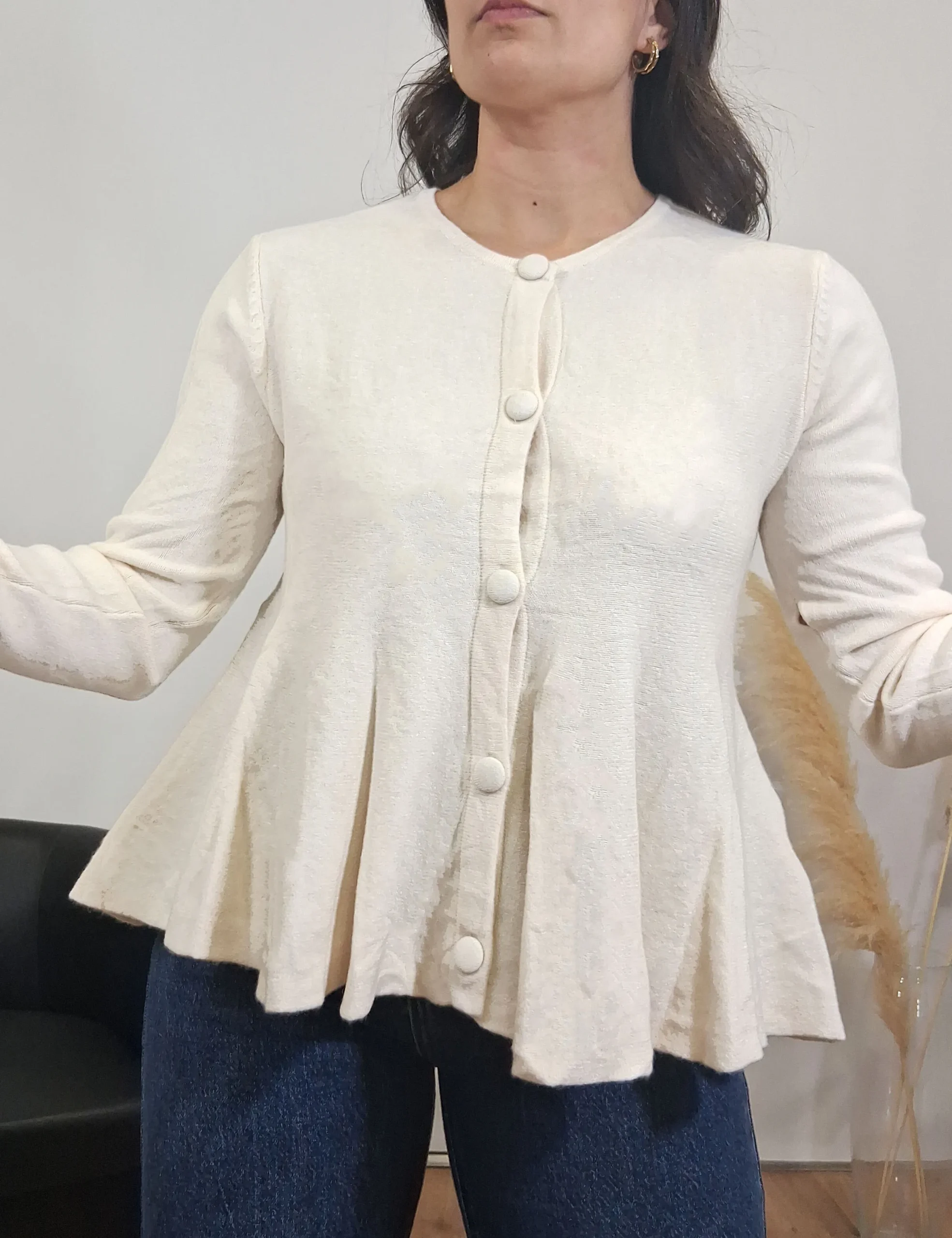Chaqueta de punto con volante en la parte inferior en color crudo.