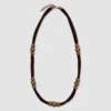 Collar de lurex en color dorado con abalorios en forma de bolas pequeñas.