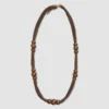 Collar de lurex en color marrón chocolate brillante con abalorios en forma de bolas pequeñas.