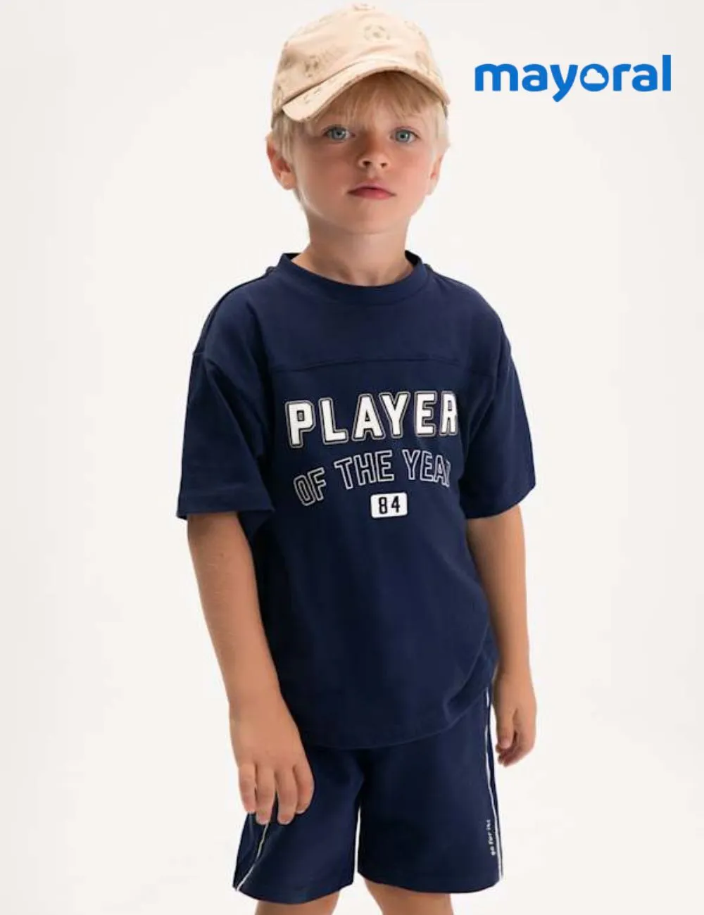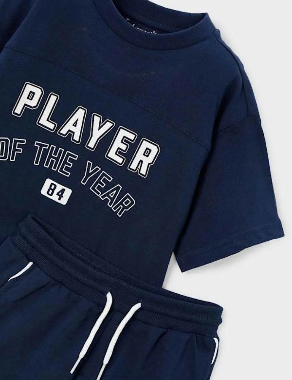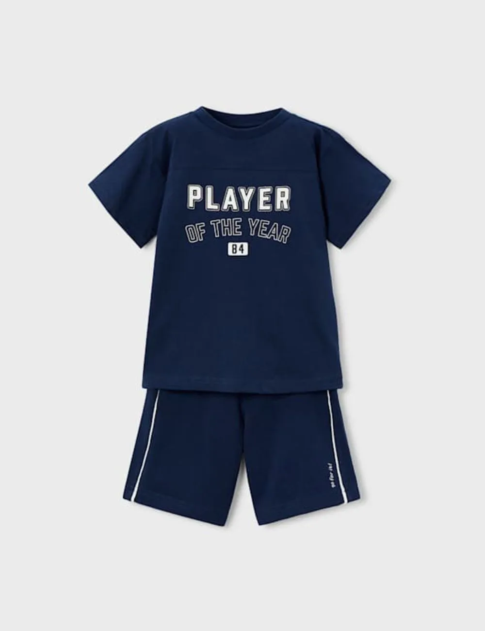 Conjunto Mayoral dos piezas de bermuda y camiseta de manga corta player . Tono azul marino.