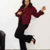 Conjunto de punto de jersey y pantalón de pata ancha en color negro.