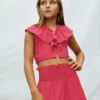 Conjunto de dos piezas de la marca Mayoral compuesto por camiseta manga corta crop y pantalón corto color antracita.