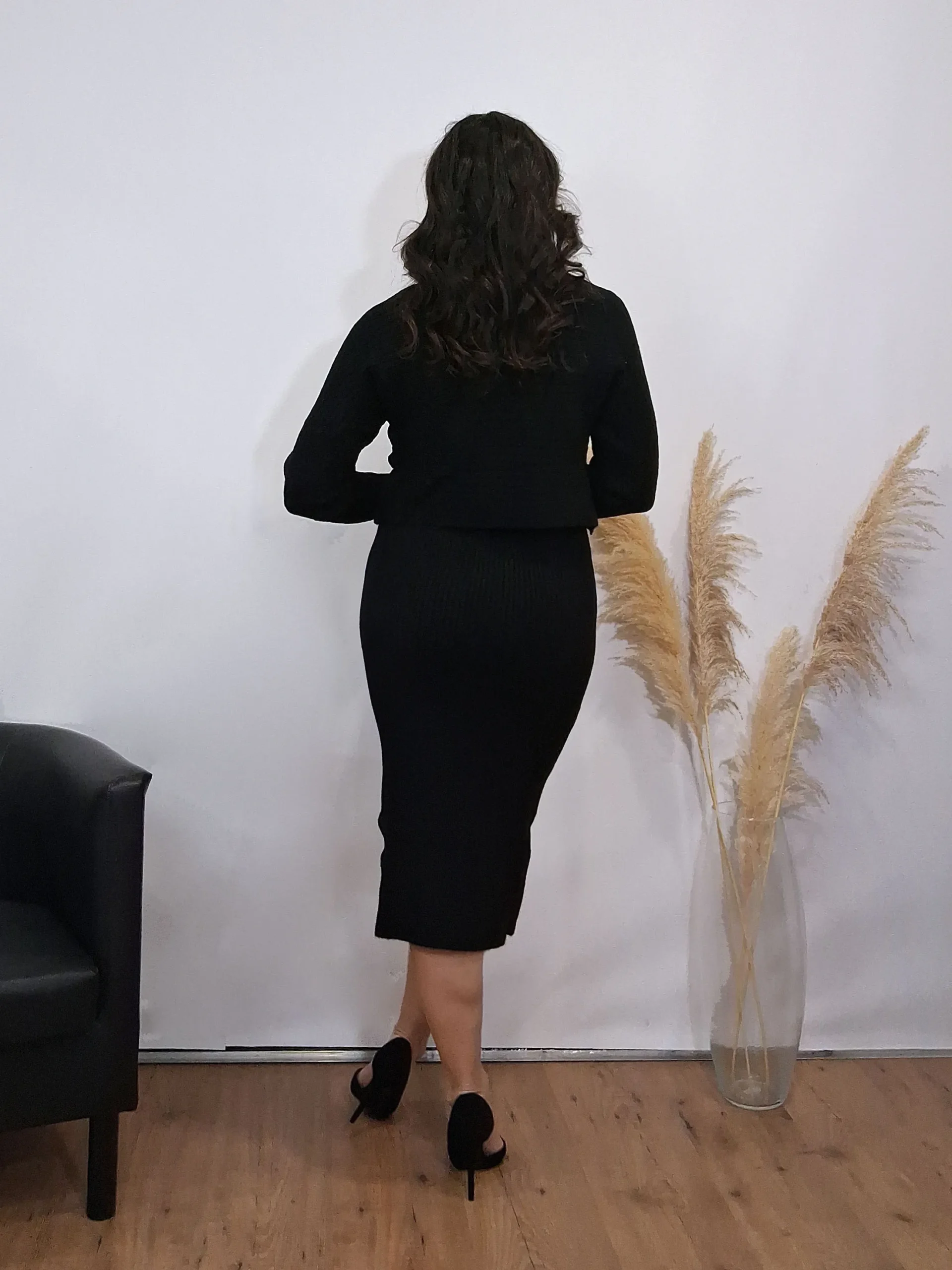 Conjunto de vestido y jersey de punto trenzado. Color negro.