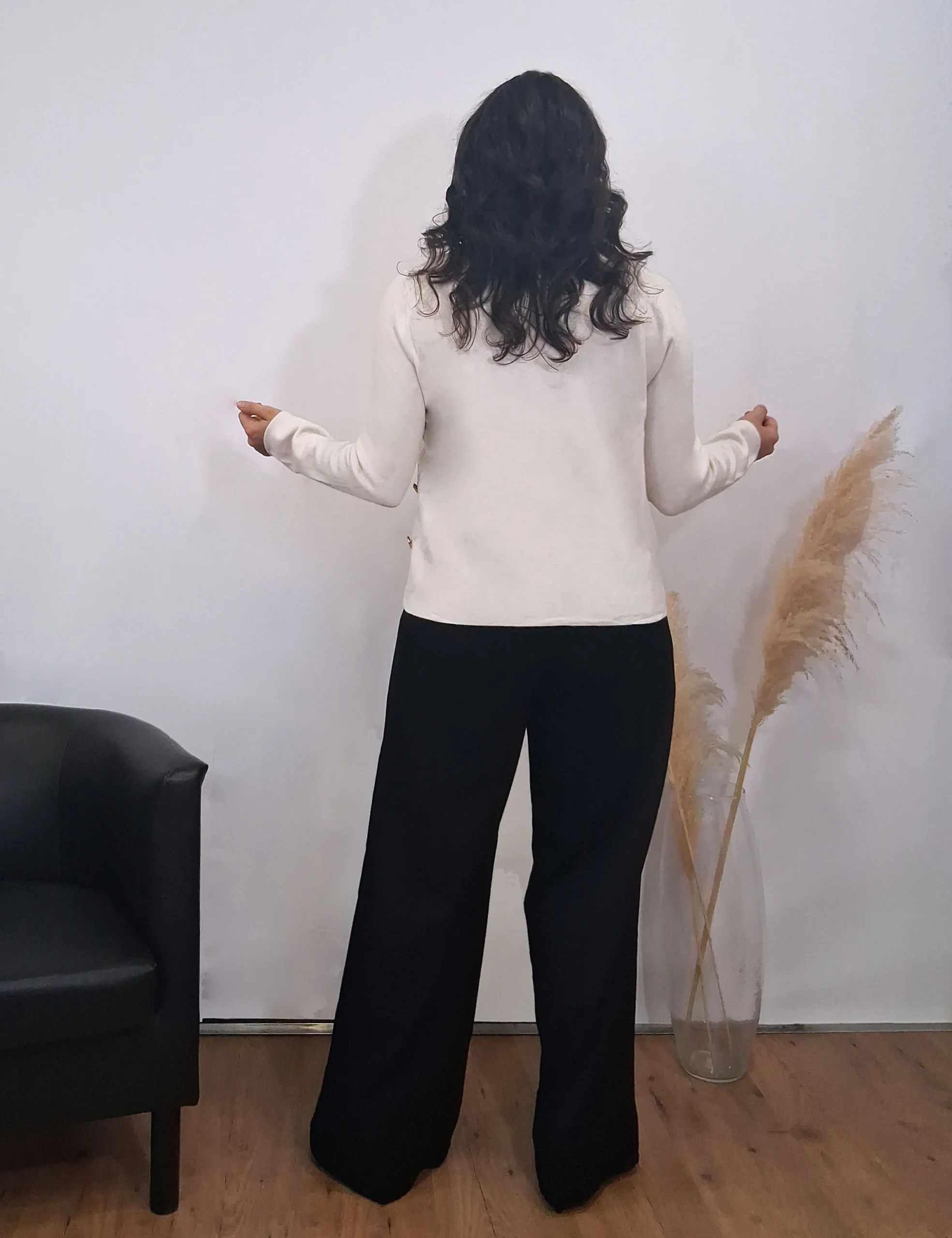 Jersey de punto en color crudo con detalle decorativo de botones dorados en los laterales.