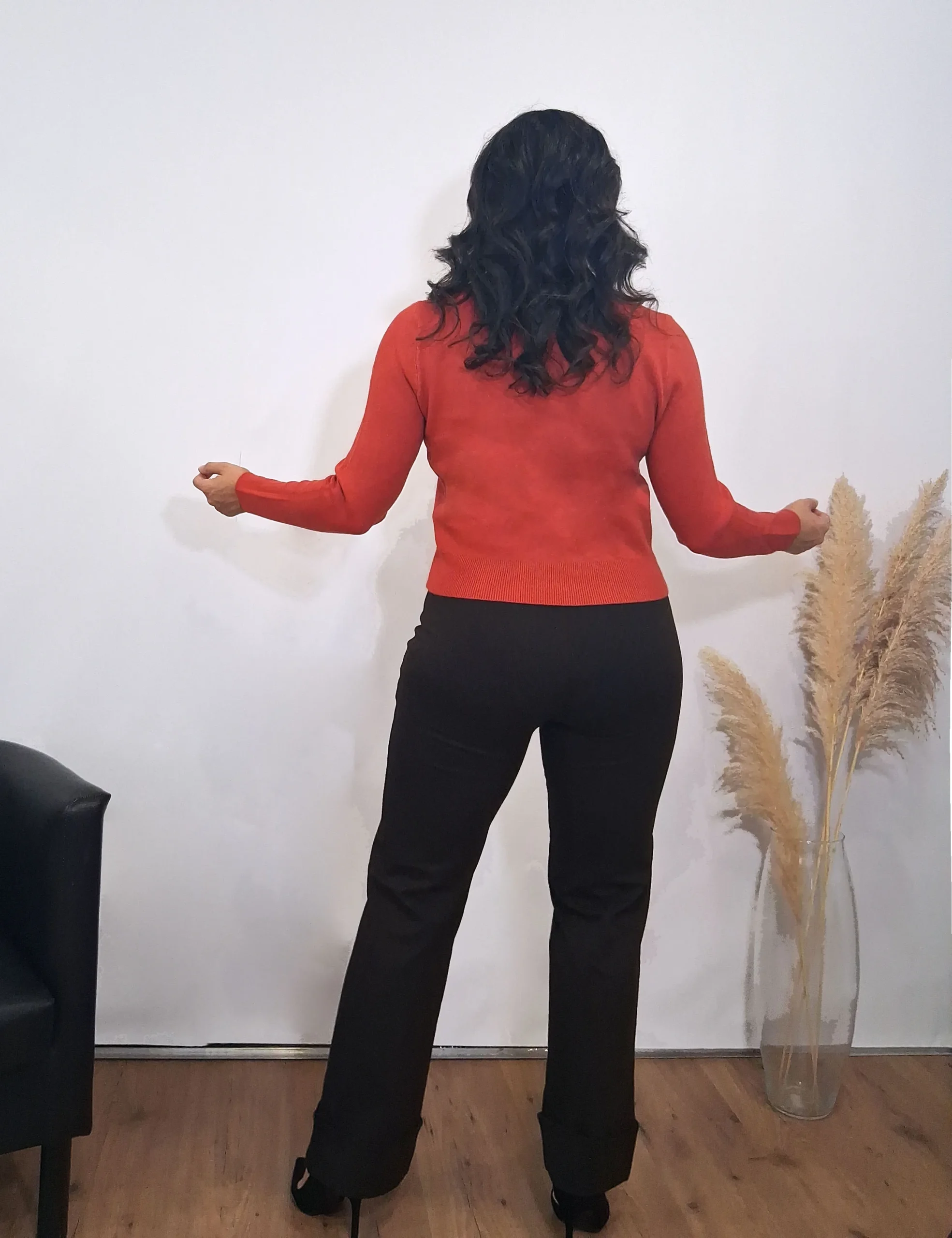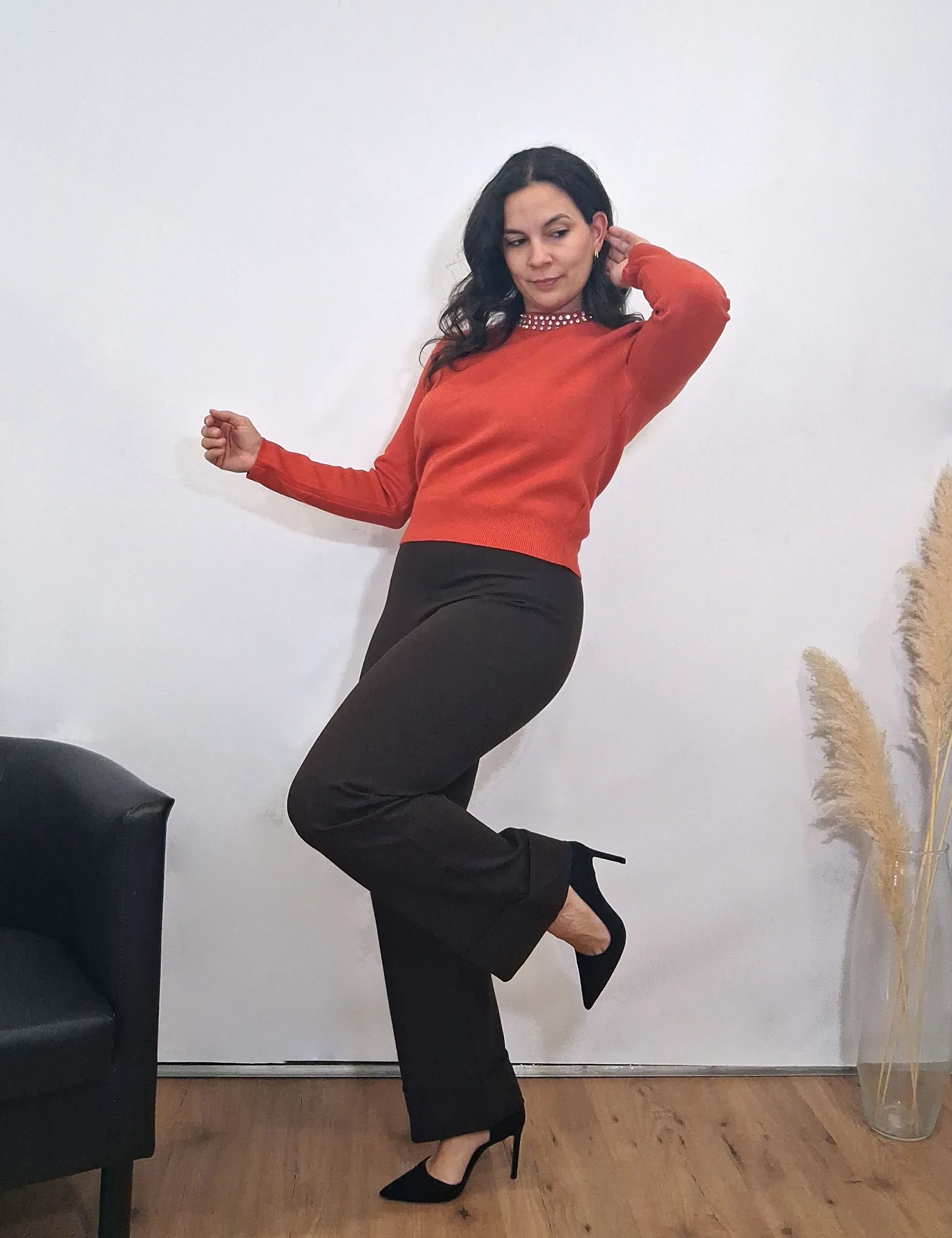Jersey de punto con detalle de brillos en el cuello. Color caldera.