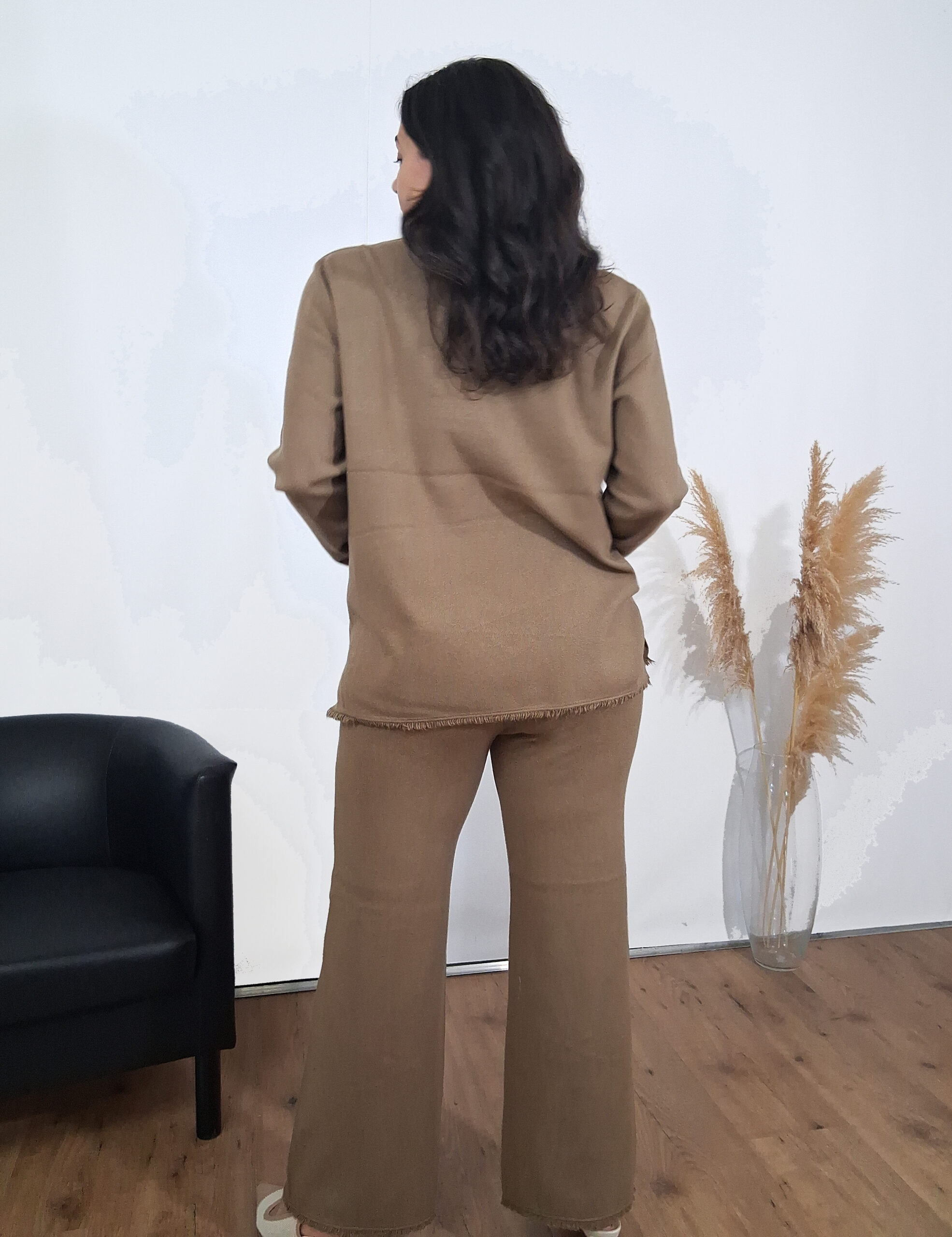 Jersey de colormarrón de punto eslástico con detalle de flecos.