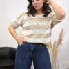 Jersey de punto con estampado de rayas en tonos amarillo y crudo, con diseño palabra en parte delantera.
