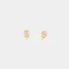 Pendientes infantiles de acero con diseño de sol amarillo y naranja.