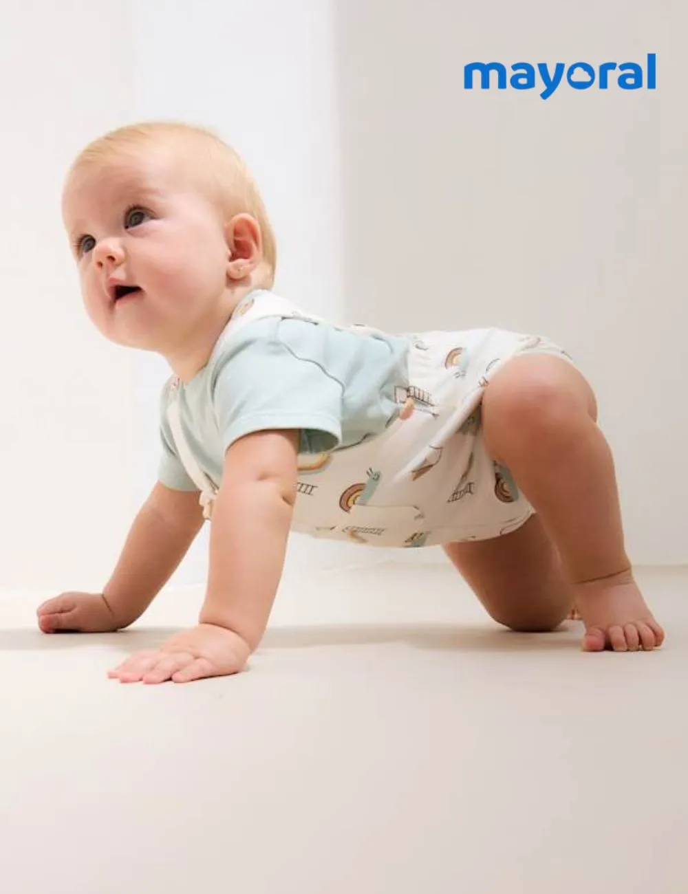 Mayoral. Peto corto color crudo. Estampado infantil .