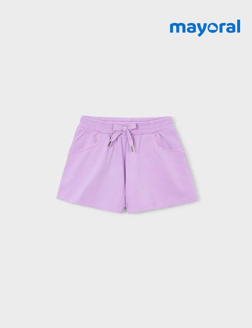 Short de felpa de la marca Mayoral con detalle en bolsillos y cintura elástica. Color lila.