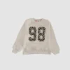 Sudadera de niña color crema con aperturas laterales. Con estampado animal print con forma de corazón.