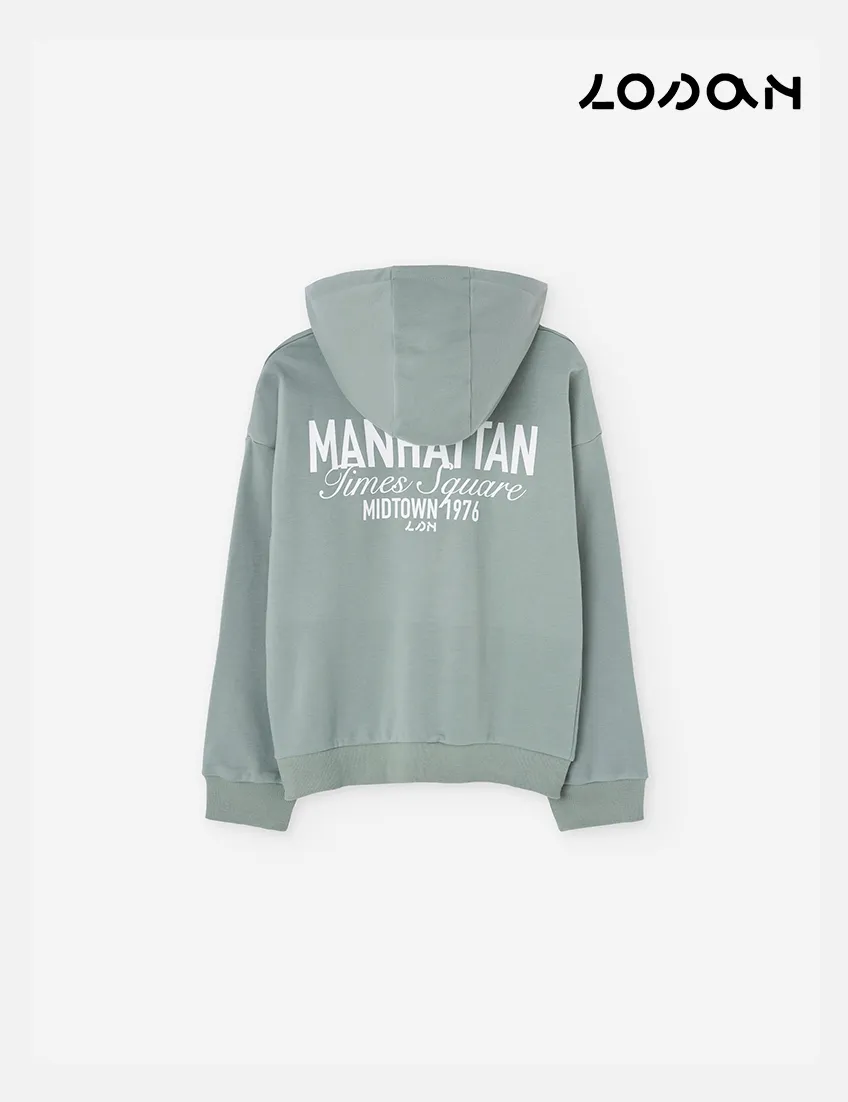 Sudadera de niña en color azul turquesa con estampado. Con capucha. Losan.